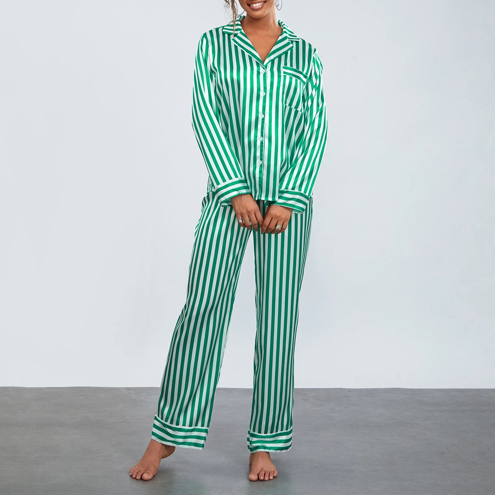Damska piżama w pionowe paski