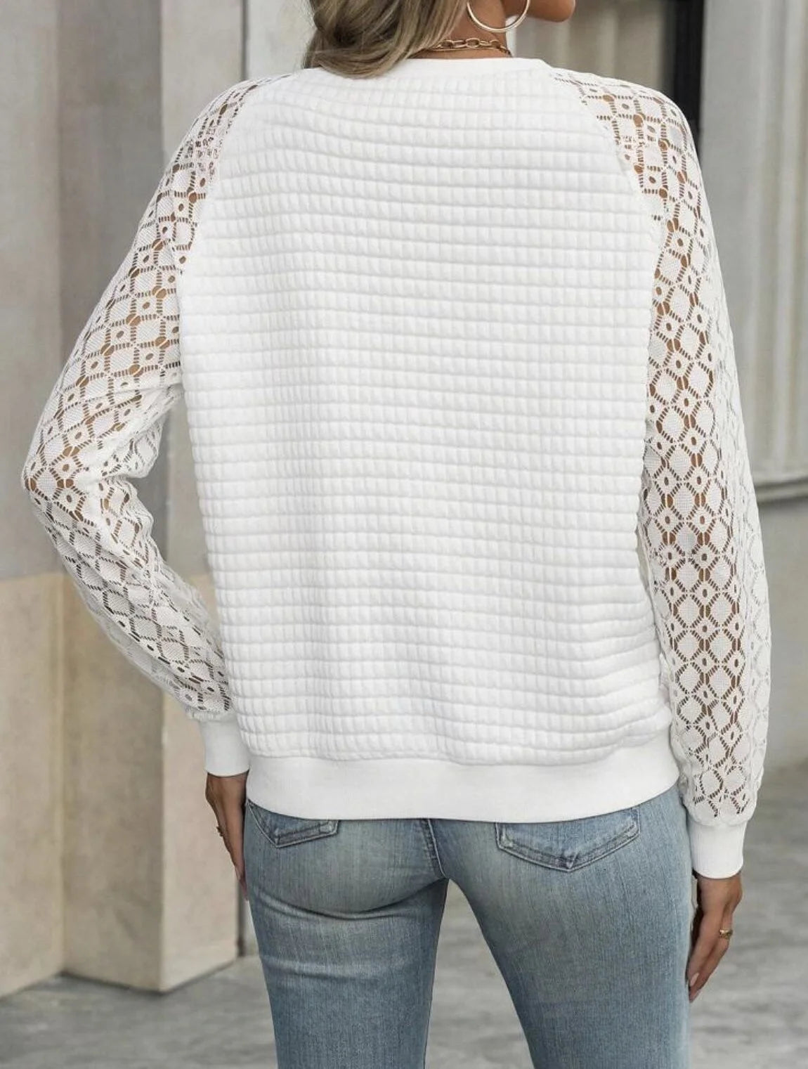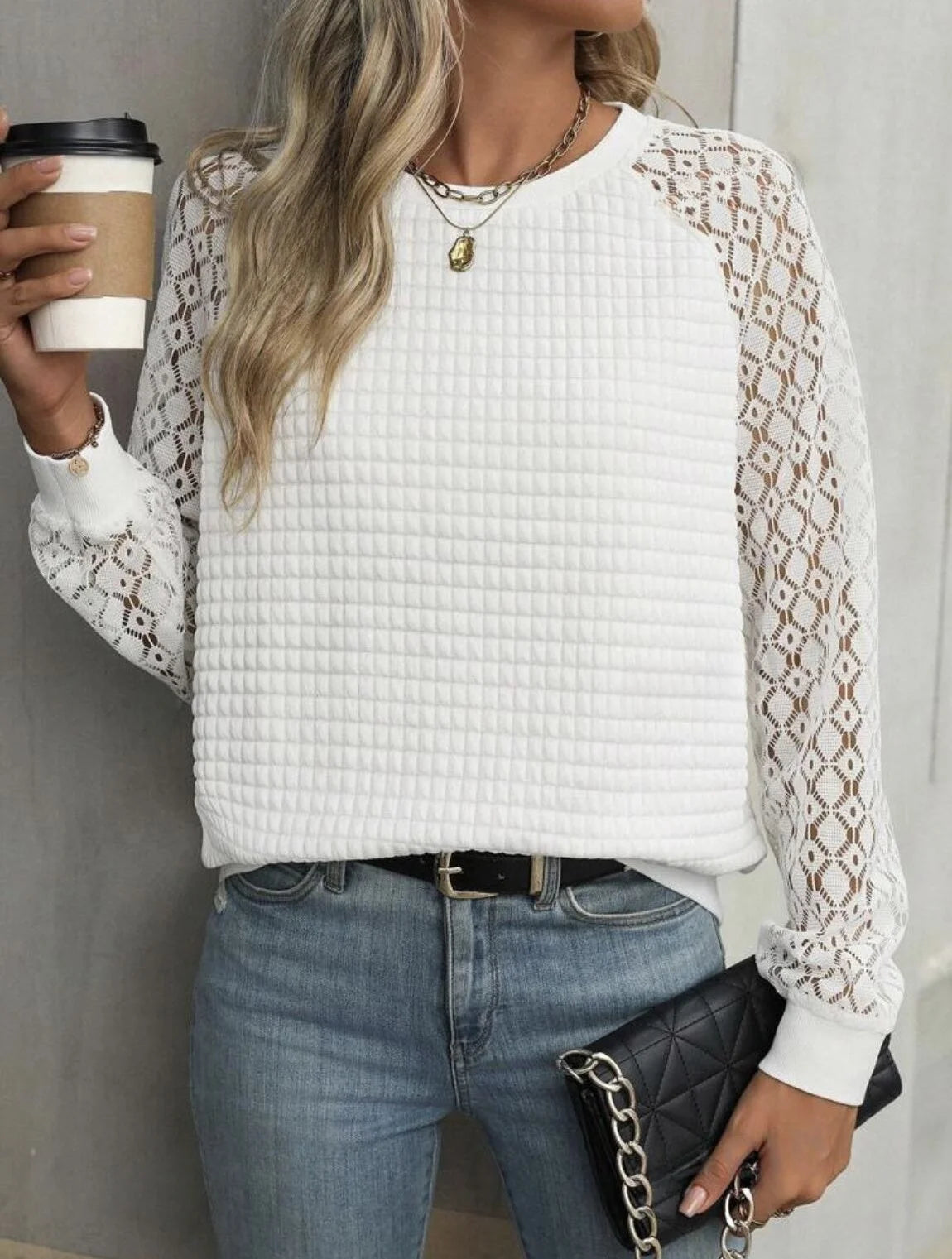 Bluzka damska z długim koronkowym rękawem