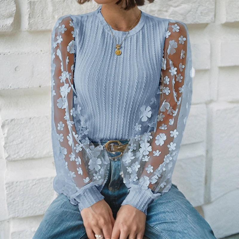 Bluzka z długim rękawem z siateczki w kwiaty