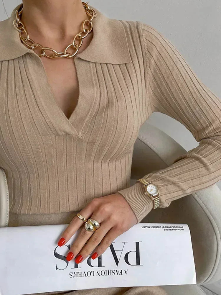 Prążkowany sweter w stylu polo