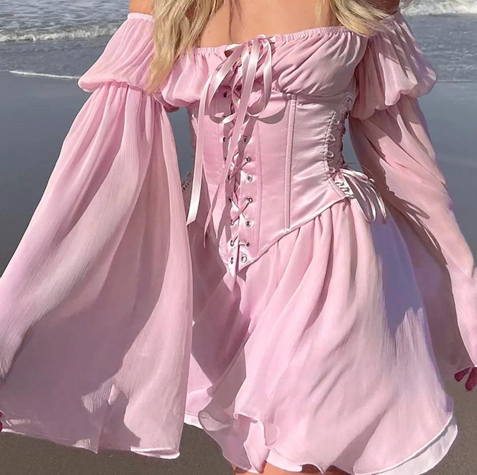Sukienka mini z rozkloszowanymi rękawami