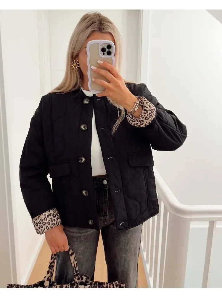 Przejściowa kurtka damska z podszewką w panterkę