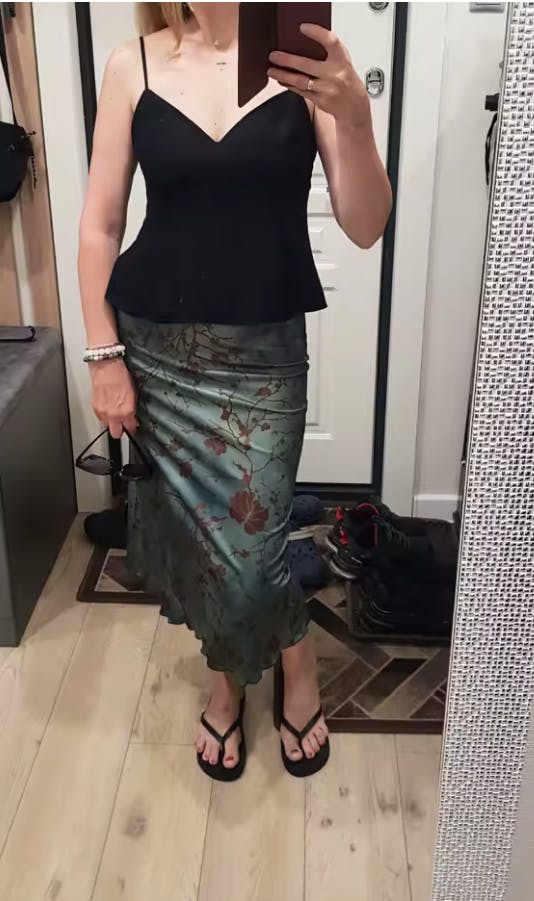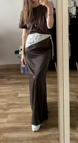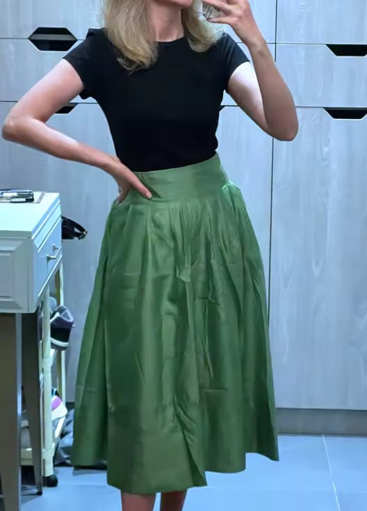 Bardzo ładna spódnica, jestem zaskoczona, że jest bardzo wygodna w noszeniu i dobrej jakości. W pasie jest dobrze, wziąłem rozmiar S, ale on odpowiada XS/S i jest dość długi, ponieważ mam 172 cm wzrostu.